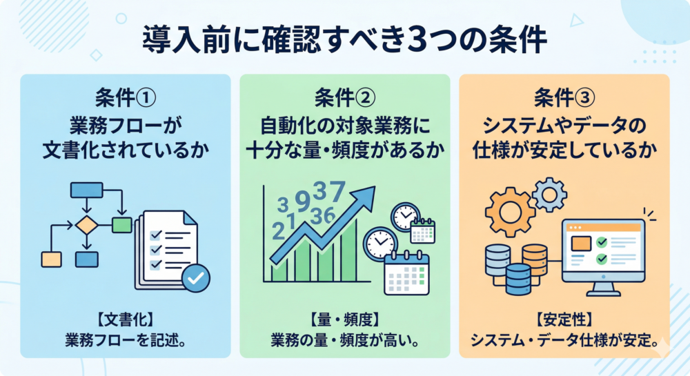 最も重要な判断基準は「人間が判断しなくてもルール通りに処理できるか」です。